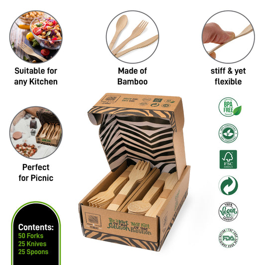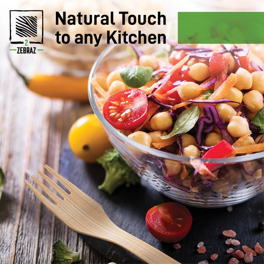 2ZEBRAZ Bamboo Cutlery Set - 100 Pieces | Durable, Natural Alternative to Plastic | Perfect for Parties, Picnics, and Daily Meals