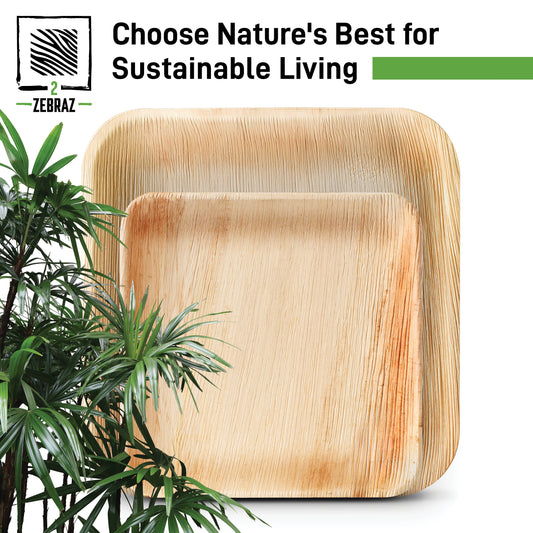 2ZEBRAZ Square Palm Leaf Plates Set - 25x7β & 25x10β | Durable, Stylish & Microwave-Safe | Pack of 50